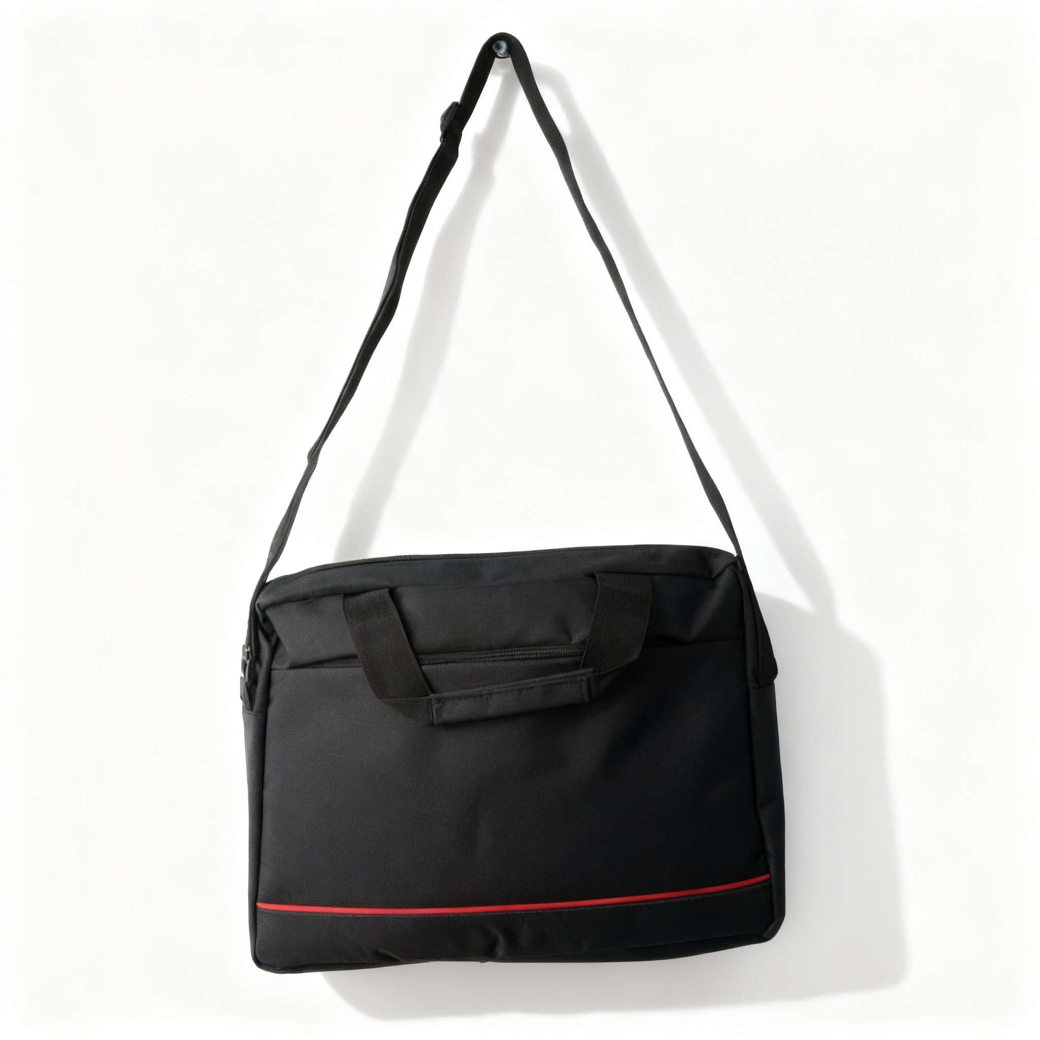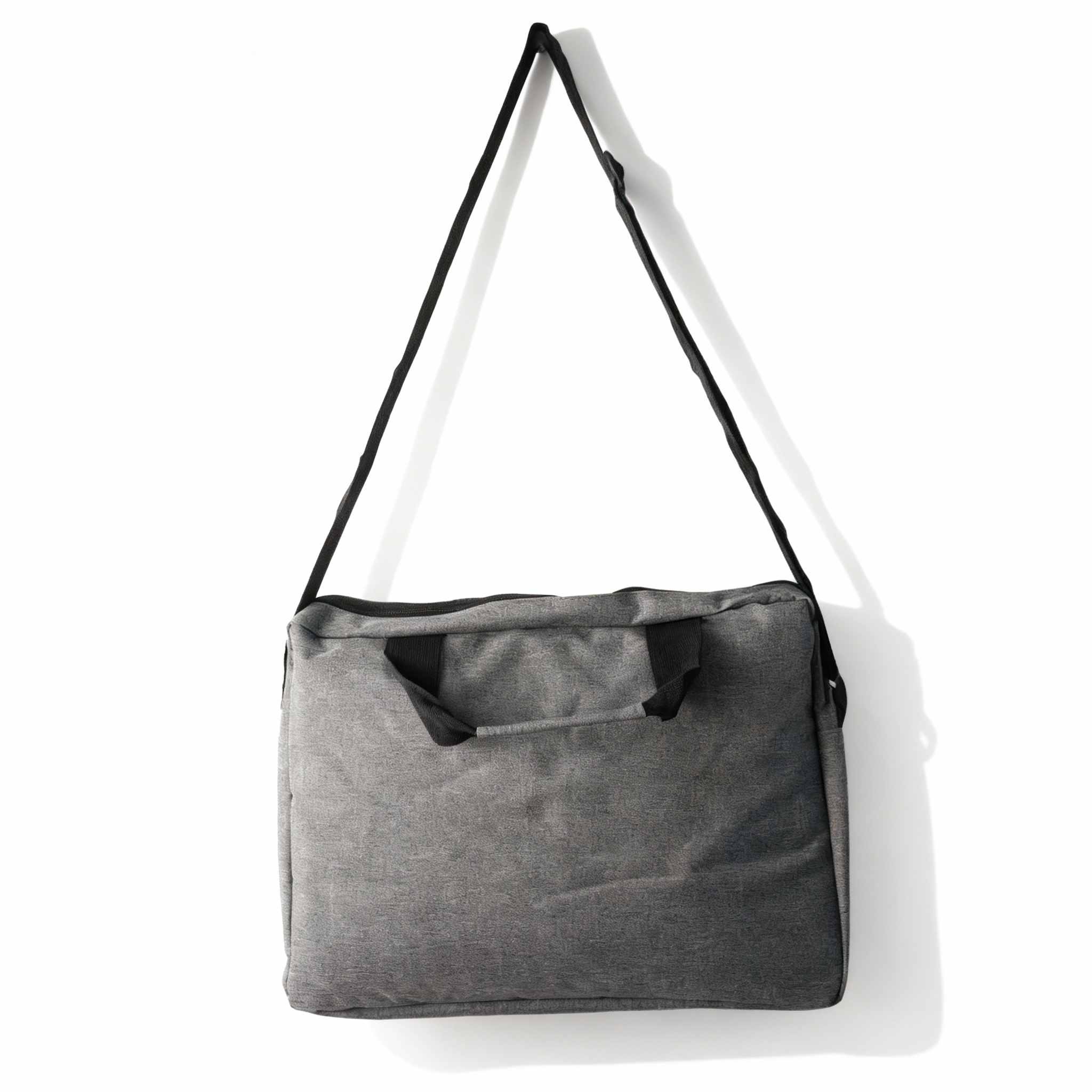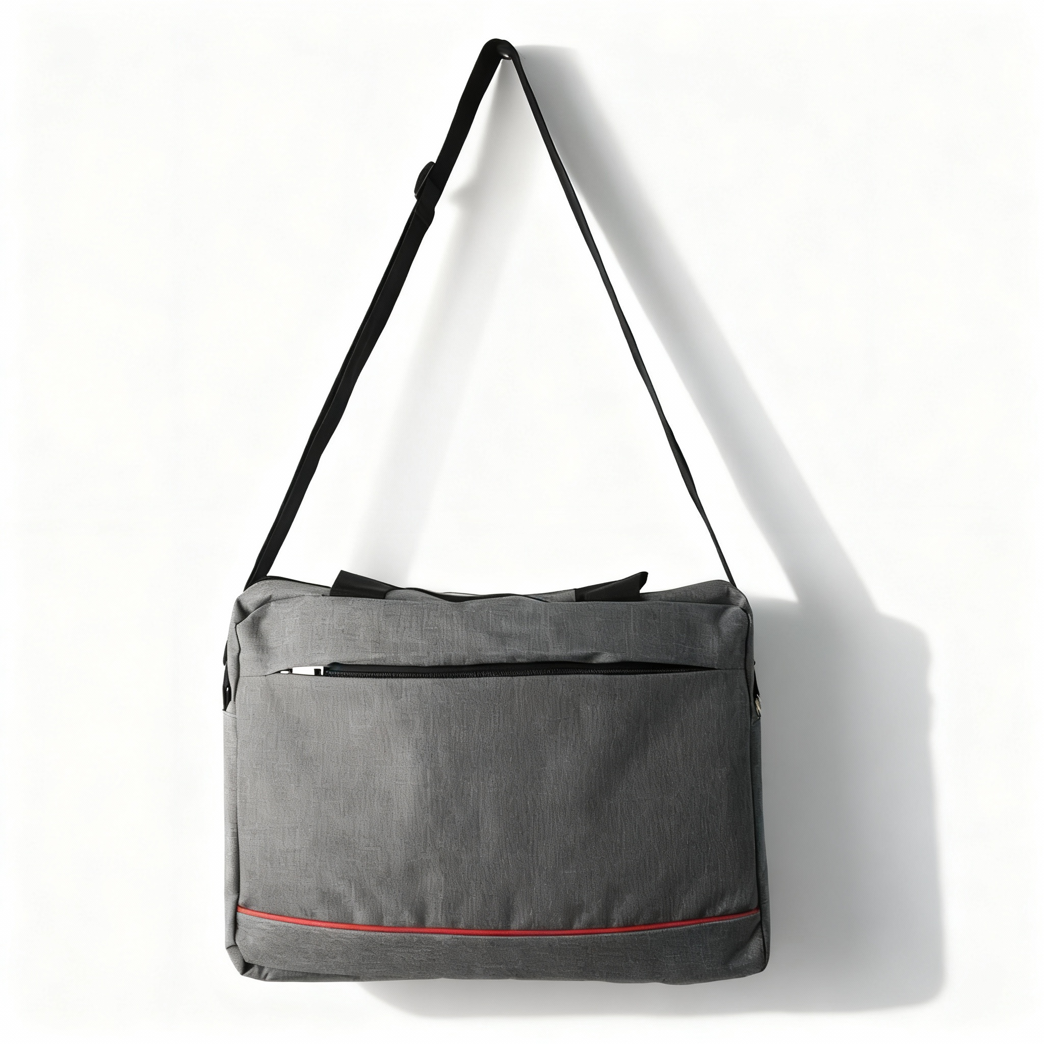 Modern fabric laptop bag with sleek front zipper pocket, adjustable shoulder strap, and inner padded compartment. Designed for students and professionals for everyday use